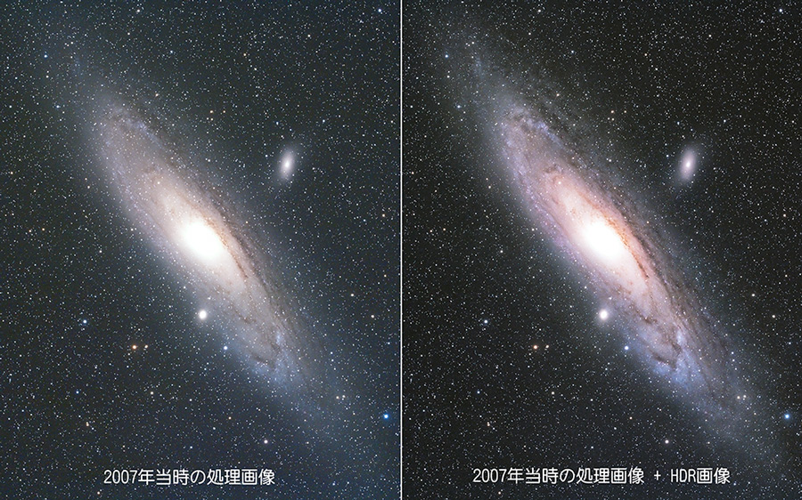2007年TeamBLSの方々としらびそ遠征の時に撮ったM31を、Photoshopのplugins softを使ったHDR合成の再処理をしてみました。