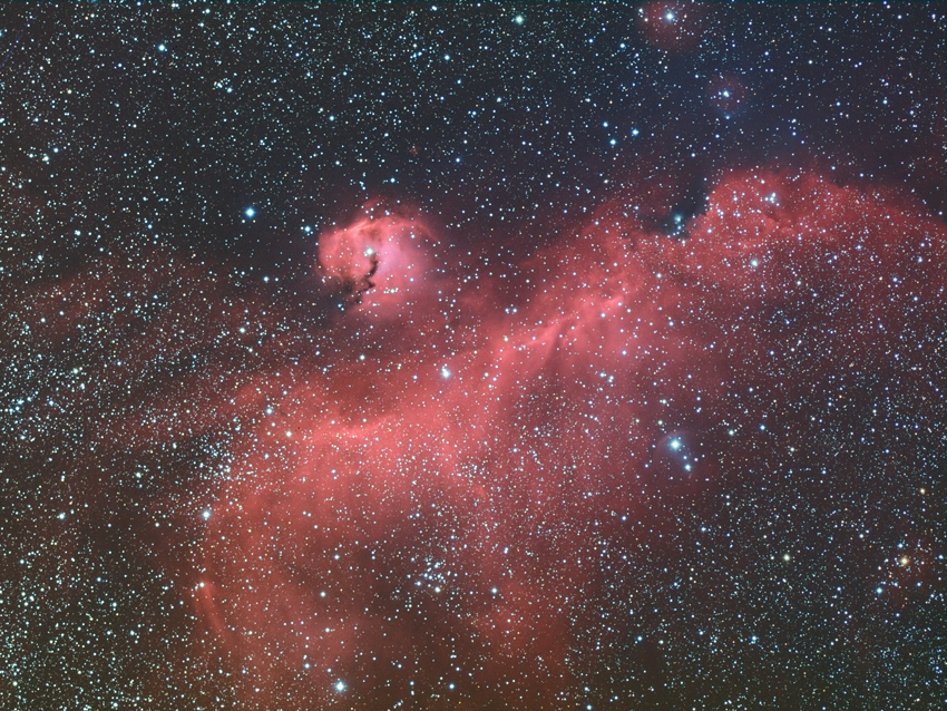 今年初の撮影です。冷却CCDではなかなか色が思うように出せず画像処理が難解ですが、Hαフィルターを使うと赤い星雲には良い感じに色が