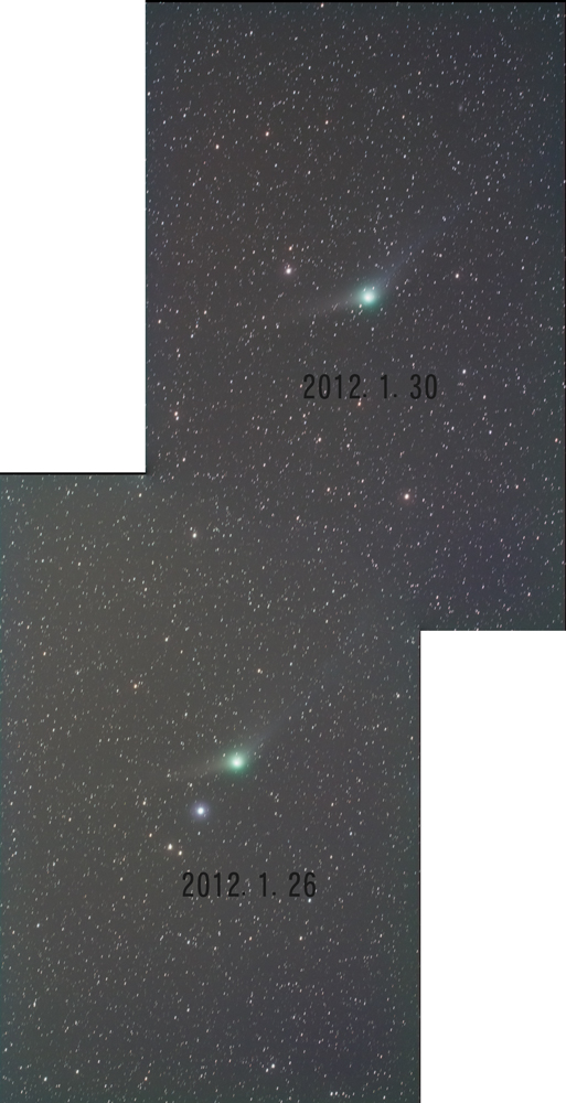 1/26_ISO1600_4分x7枚彗星核コンポ加算 1/30_ISO2000_4分x7枚彗星核コンポ加算 箱根