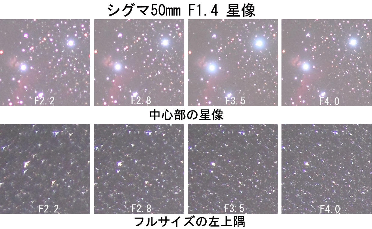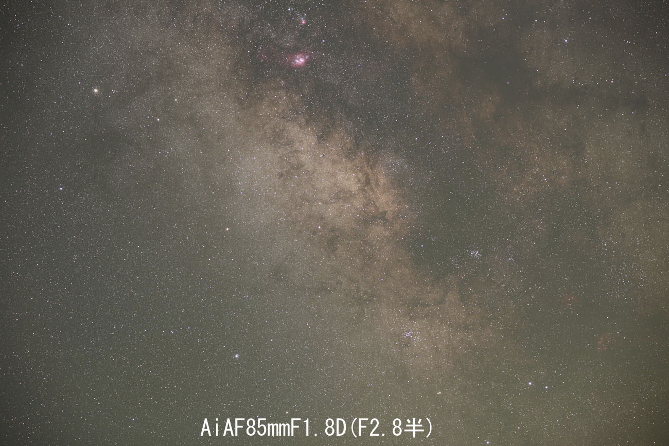 固定撮影やにじみフィルターを使った星座写真では有効なレンズですが、ガイドによる星野写真では、単焦点の優秀なレンズには敵わないようです。