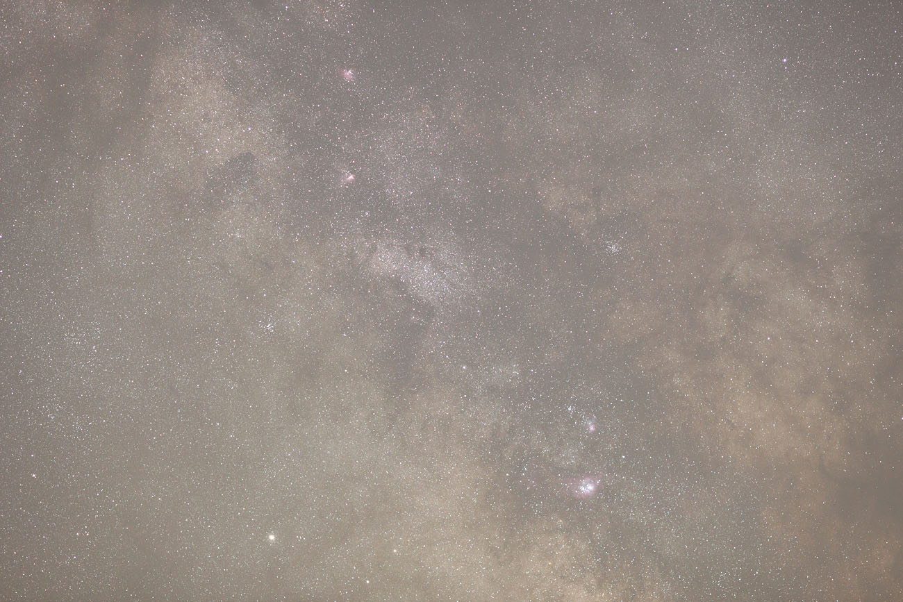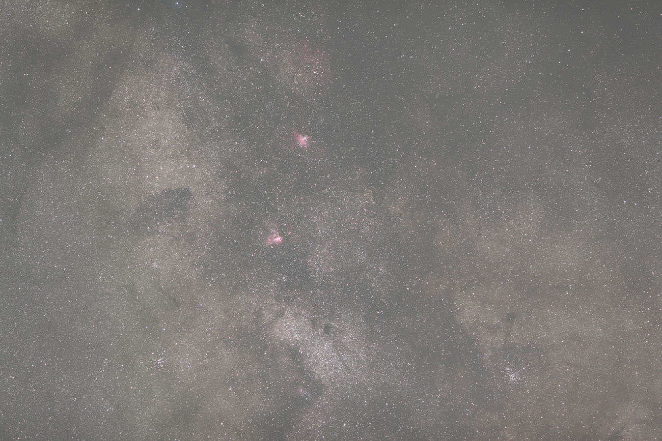 短時間露出のコマですが、中心部の明度はそのまま保持したかったので、単純に輝度情報が無い部分だけ明度を上げてコンポジットしました。20分の画像が60なら40位までにしてみました。