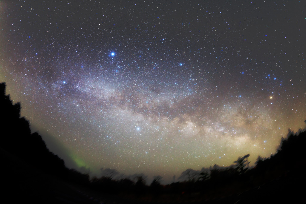 >BLSさん5D MarkkIIでも撮ったのですが、間違えて開放にしてしまいさすがの魚眼レンズも周辺減光が出たのと、これだけ広い範囲だと光害の影響が大きく、その辺の補正が大変でどうもいま一つです。
