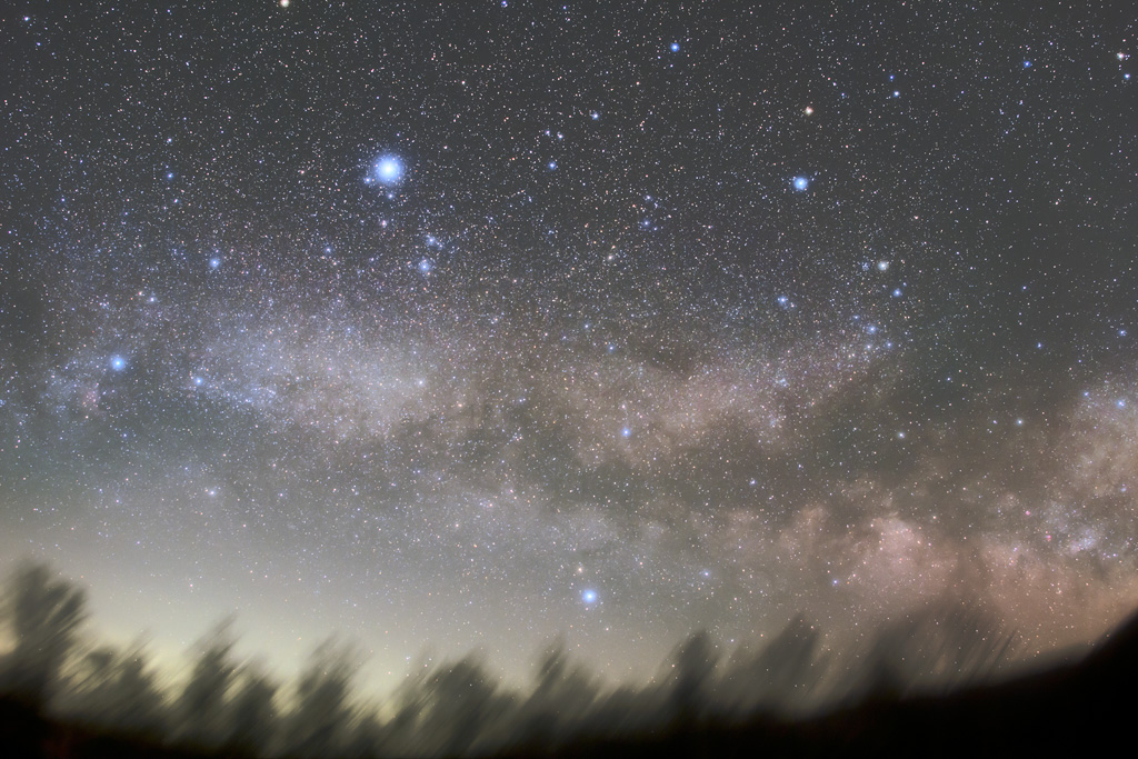 しかし夜半過ぎで空が暗くなってくると、南の山の向こうで何か光が点滅し、さそり座いて座のあたりまで照らされているのが気になります。実は先月に来たときから気付いていたのですが今月も状況は変わらずでした。風力発電の点滅灯では?という声があったのですがどうなんでしょうか。