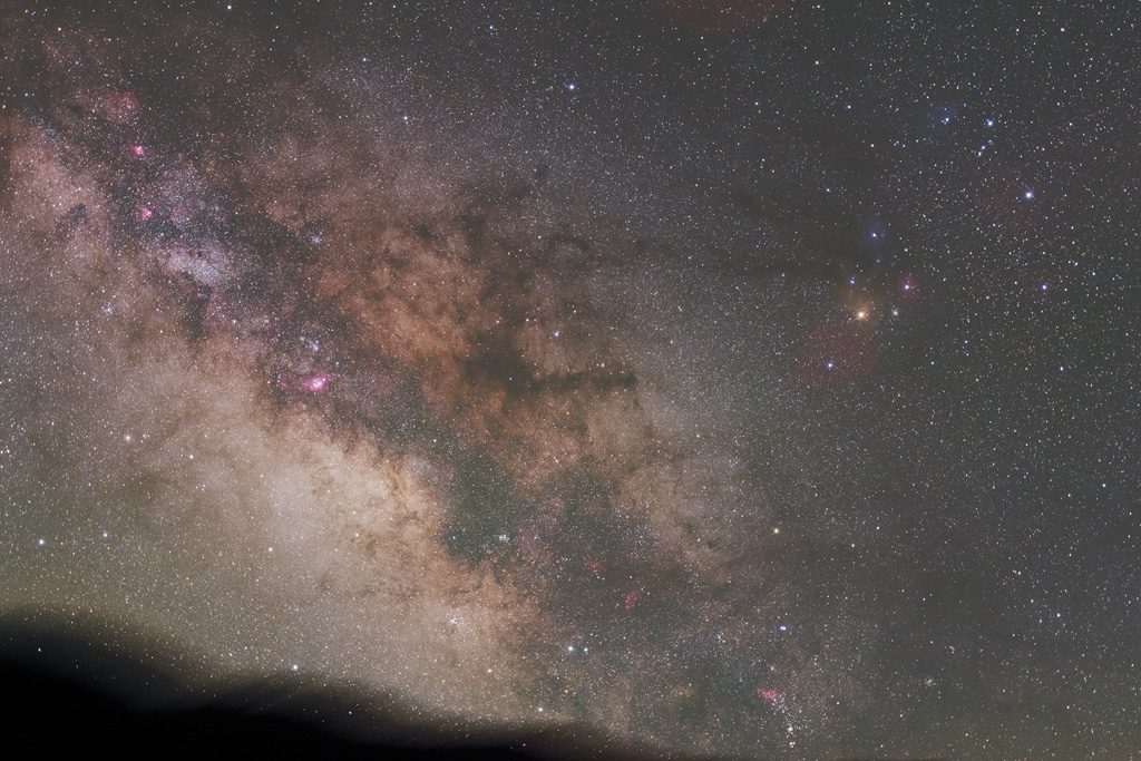 なかなか晴れと都合のタイミングが合わなかったのですが、土曜日の夜可能性がありそうだったので天城まで行ってきました。22時ごろから天の川が昇ってくる1時ぐらいまでは快晴、ただし時折西からの強風。その後風が弱まるとともに東よりに変わって霧に包まれて終了しました。星屋さんはほかに誰もいませんでした。撮影は思い通りには行きませんでしたが、今シーズン初のさそり座、夏の天の川を見ることができたので良しとします。このレンズは夏の天の川用に買ってファーストライトです。APS-Cではちょっと狭いですね。かといってノーマルの5D MarkIIではカラーバランスが難しい。。