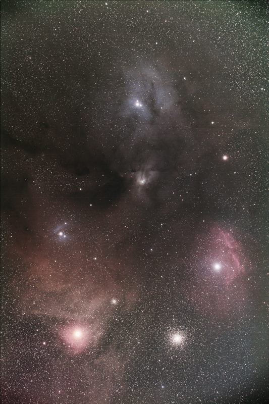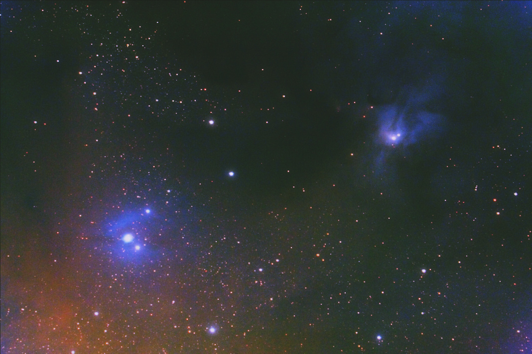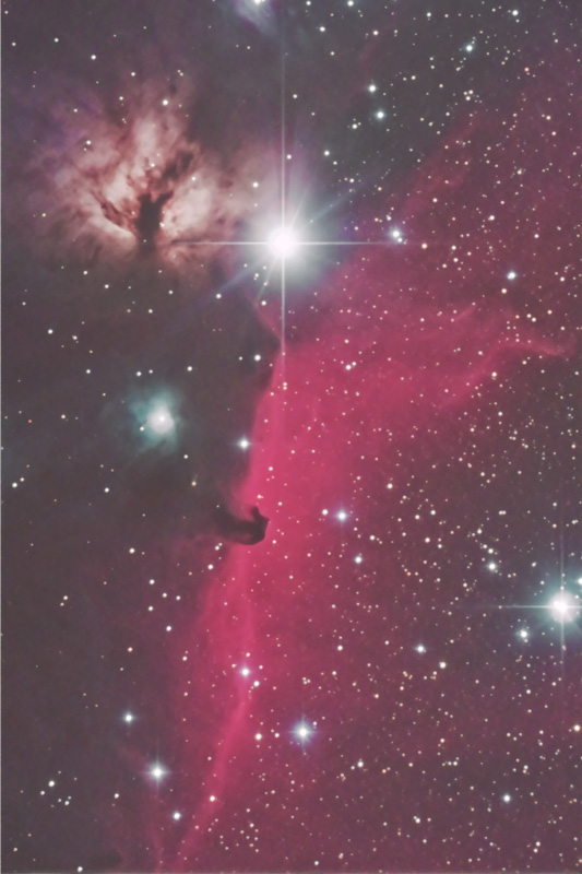 私の方は金曜日の夜に伊豆にまでいってR200SSでのファーストライトとなりました。でもピンボケ、強風で星が丸々太ってしまいました。まだまだ課題が多いです。速攻処理で色などは適当です。ゴーストがどれぐらい出るかのチェックもかねてここを撮りました。アルニタクのすぐ上に赤っぽいゴーストが小さく出ていましたが、処理次第では目立たなくなるようです。