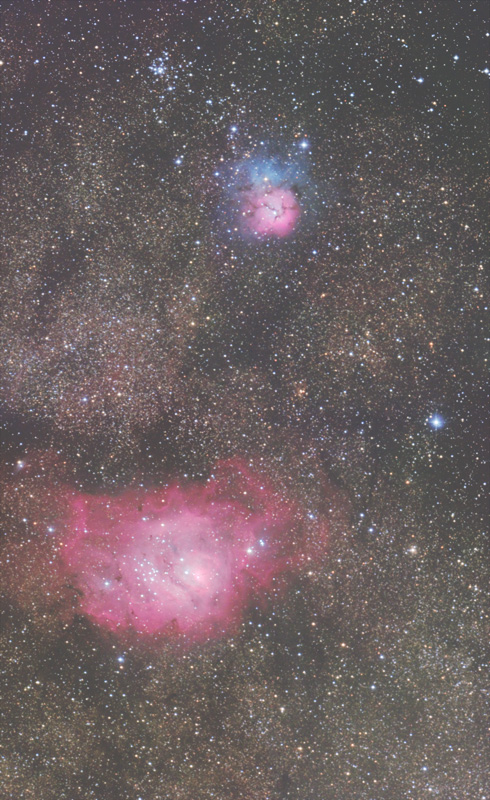 ご無沙汰しています。ようやく撮影出来るようになりまして、久々に天城で撮りました。夏の対象のモザイクを気長にやる予定です。それは当分完成しないので、薄明前のM8あたりを1枚。